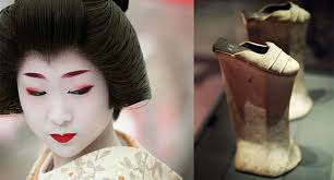Siapa yang tidak kenal dengan negara yang satu ini? Ya, jepang yang letakknya di ujung barat samudra pasifik dan bertetangga langsung dengan republik rakyat tiongkok, korea, dan rusia ya guys. Yang akan kita bahas mengenai riasan wajah ni. Di indonesia biasanya orang akan menggunakan bedak dan riasan untuk mempercantik diri. Tetapi, salah satu tradisi di jepang ini mereka akan menggunakan kotoran burung bulbul yang di olah dengan campuran tepung beras. Meskipun kotoran burung bulbul ini di percaya sangat berkhasiat untuk kecantikan wajah akan tetapi, mereka akan merasa mual saat di gunakan pada wajah. Orang jepang juga percaya bahwa bahan alami kotoran burung bulbul ini akan membuat kulit mulus dan lebih halus. Ya kini geisha menjadi kedambaan orang-orang jepang dengan dandanan alami yang berasal dari kotoran burung bulbul.